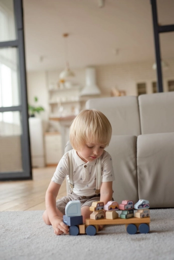 Descoperiți puzzle-ul din lemn de calitate camion cu mașinuțe în nuanțe pastel de la CUBIKA. Setul conține 12 piese colorate, din care copiii asamblează un camion de transport capabil să ducă 8 mașinuțe. Jucăria din lemn provenit din surse ecologice dezvoltă motricitatea fină, gândirea logică și creativitatea. Culorile pe bază de apă, producția europeană și certificarea TÜV asigură calitate și siguranță ridicate.