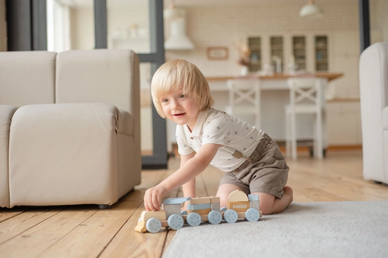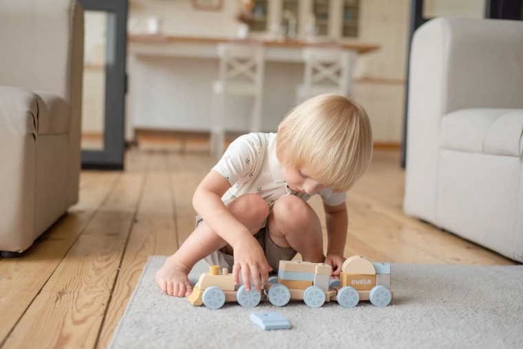 Descoperiți un puzzle jucăuș pentru cei mici: trenulețul curcubeu din lemn cu două vagoane de la CUBIKA, în nuanțe pastel delicate. Setul conține 15 piese colorate din arțar și fag de înaltă calitate, colorate cu vopsele pe bază de apă, sigure. Susține dezvoltarea motricității fine, gândirii logice și creativității. Fabricat în Europa, cu certificare TÜV și conform standardului EN 71.