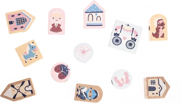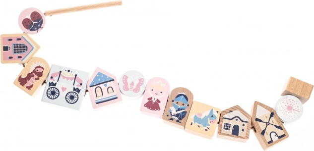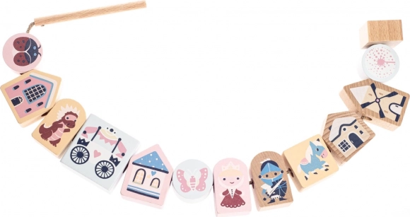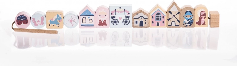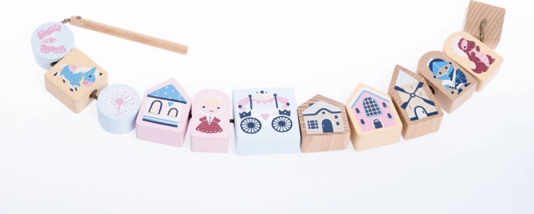 Descoperiți setul fermecat de înșirat în nuanțe pastelate delicate de la CUBIKA, care dezvoltă motricitatea fină, răbdarea, memoria și gândirea logică. Setul conține 12 piese din lemn cu motive de basm, un șnur de 45 cm cu bastonaș din lemn și 8 șabloane pentru o activitate de înșirat distractivă. Fabricat din arin și fag de înaltă calitate cu culori pe bază de apă, sigure. Certificare TÜV, standard EN 71, fabricat în Europa.