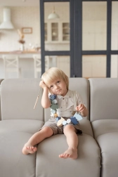 - 12 piese din lemn pentru înșirat cu tematică marină, 1 șiret cu bastonaș din lemn și opritor, 8 șabloane