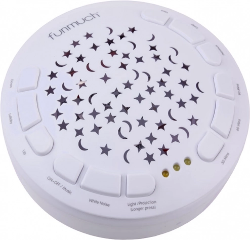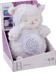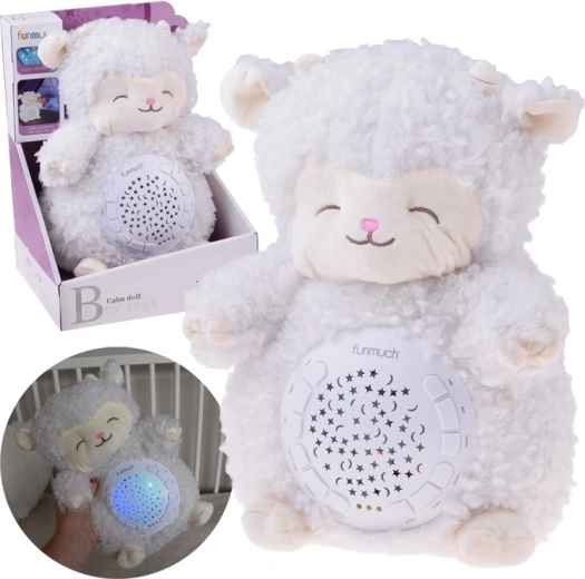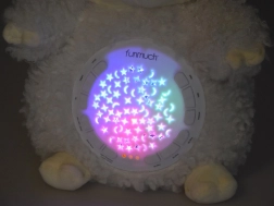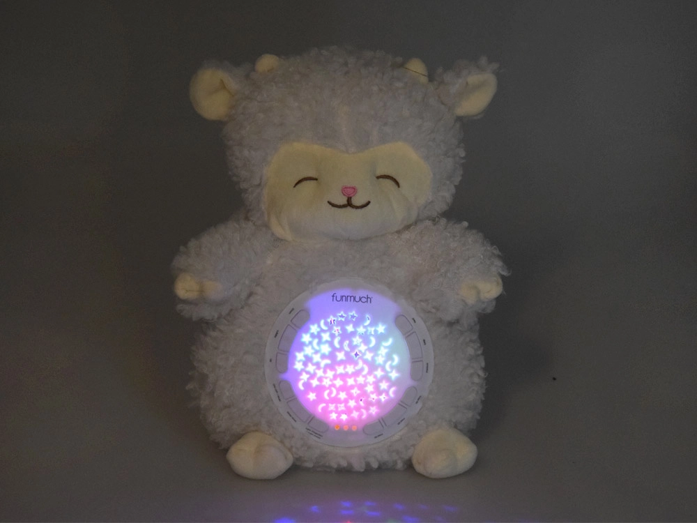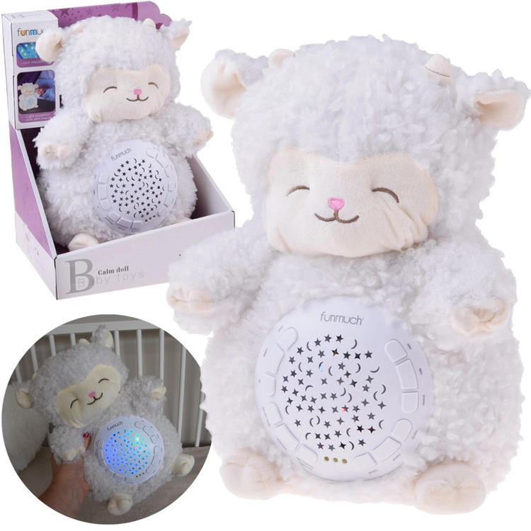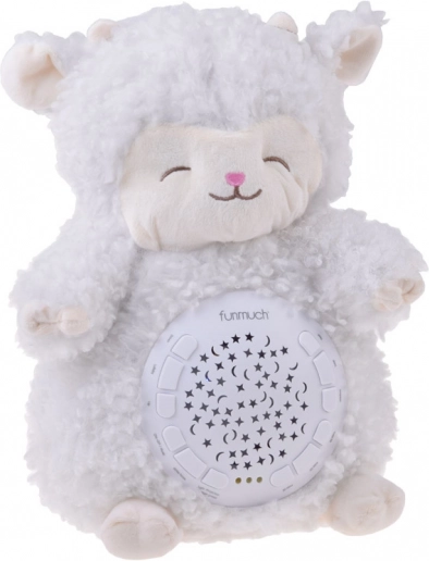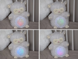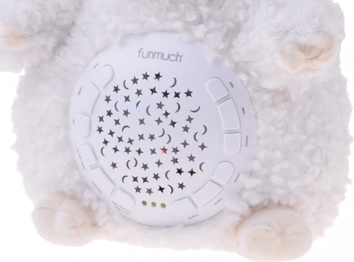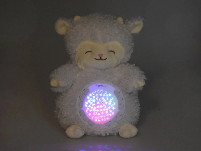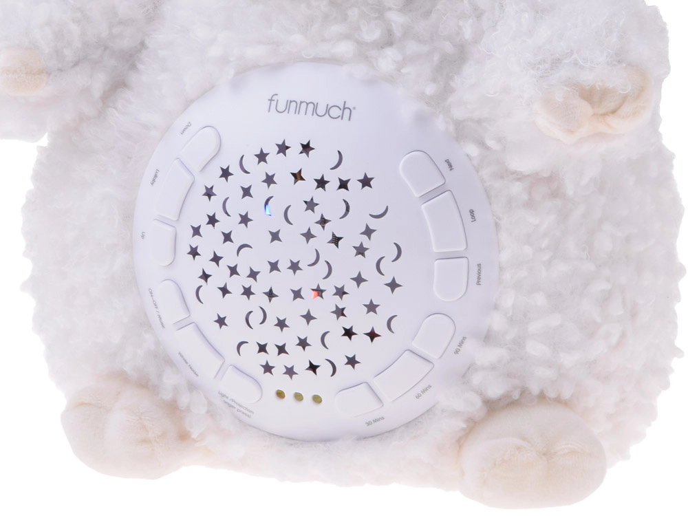 Această oiță moale și pufoasă creează în camera copilului o atmosferă magică pentru un somn odihnitor. Proiecția luminoasă colorată a stelelor și a lunilor pe pereți și tavan, împreună cu melodiile delicate, vuietul mării sau ploaia, ajută copilul să se liniștească și să se simtă în siguranță.