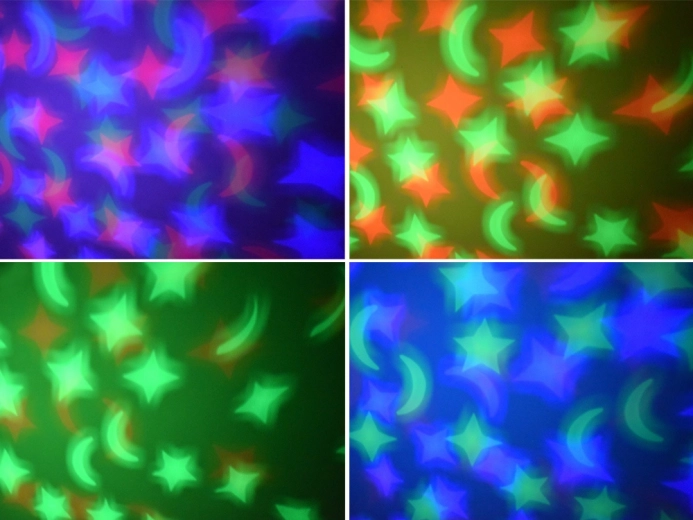 - Proiecție de steluțe și luni (roșu, verde, albastru)