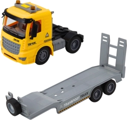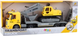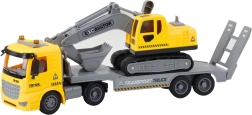 Setul cu camion, platformă și excavator pe șenile este ideal pentru copiii care iubesc utilajele de construcții. Platforma are elemente mobile și poate fi ușor detașată, astfel încât camionul poate pleca după o nouă încărcătură. Excavatorul pe șenile completează joaca cu scenarii autentice de pe un șantier real.
