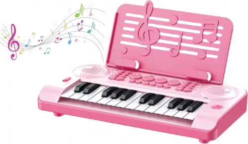 Pian electronic educațional pentru copii, 24 de clape, roz