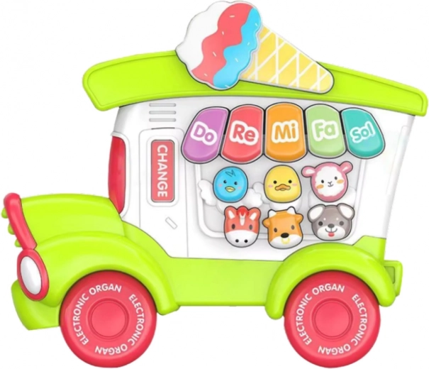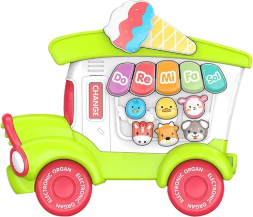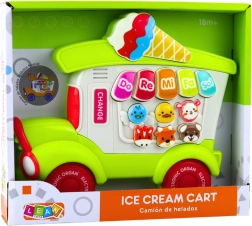 Pianul muzical inspirat de o mașinuță de înghețată atrage imediat prin aspect și sunetele prietenoase. Copiii pot învăța cu ușurință bazele muzicii datorită clapelor cu tonurile Do Re Mi Fa Sol și melodiilor distractive. Joaca stimulează coordonarea mișcărilor, memoria și imaginația.