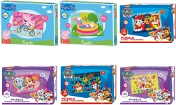 Set distractiv de puzzle pentru copii, disponibil în variantele 24, 50 și 99 de piese, cu imagini colorate din PAW Patrol sau Peppa Pig. Dimensiunea cutiei: 25 × 18,5 × 3 cm, motivul este livrat în funcție de disponibilitatea stocului. O alegere excelentă pentru dezvoltarea motricității fine, a gândirii logice și a răbdării.