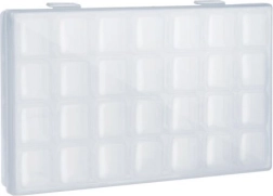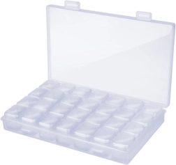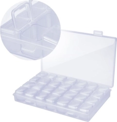 Organizatorul transparent cu compartimente și etichete păstrează diamantele perfect sortate. Găsești ușor culoarea potrivită, iar lucrul merge mai repede.