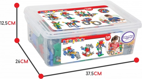 Setul de construcție WOOPIE, cu 320 de piese colorate, dezvoltă imaginația și abilitățile copiilor. Datorită formelor variate și modurilor de îmbinare, copiii pot construi modele 2D/3D stabile și structuri cu părți mobile. Realizat din material sigur și durabil, depozitat într-o cutie practică cu capac – ideal pentru joacă acasă, la grădiniță sau în terapie.