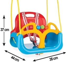 Leagănul 3‑în‑1 albastru WOOPIE este alegerea ideală pentru grădină și colțul de joacă de acasă. Datorită construcției modulare, se adaptează ușor vârstei copilului: de la un scaun complet securizat cu spătar și bară frontală pentru toddleri, până la o variantă deschisă pentru copiii mai mari. Frânghiile reglabile permit ajustarea rapidă a înălțimii, iar prinderile solide facilitează montajul.