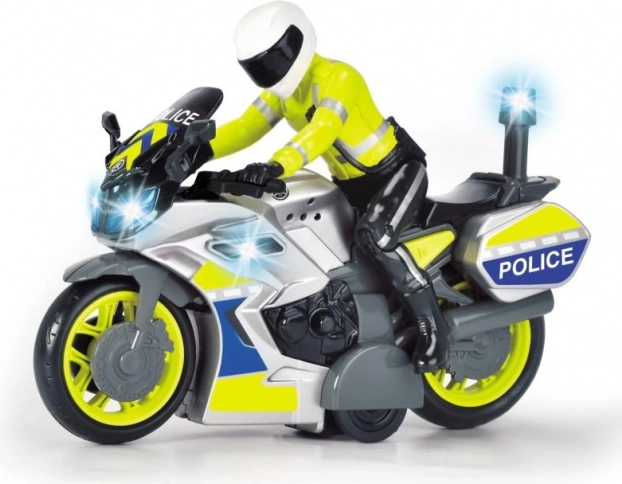 Această motocicletă de poliție realizată cu detalii, cu o lungime de 17 cm, oferă copiilor numeroase posibilități de joacă. Modelul cu mecanism de inerție pornește lin după împingere, în timp ce lumina și sunetul adaugă jocului o atmosferă realistă. Include o figurină mobilă a polițistului, care intensifică scenariile de acțiune și stimulează imaginația.