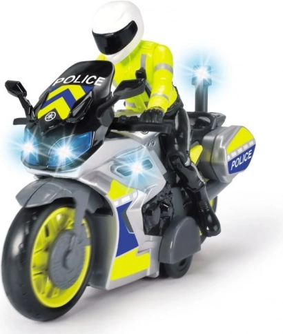 Motocicleta de poliție realistă, cu finisaj inspirat de YAMAHA, va încânta iubitorii de acțiune mici și mari. Datorită mecanismului cu volant, pornește ușor, are efecte de lumină și sunet și o figurină mobilă a șoferului pentru și mai multă distracție.