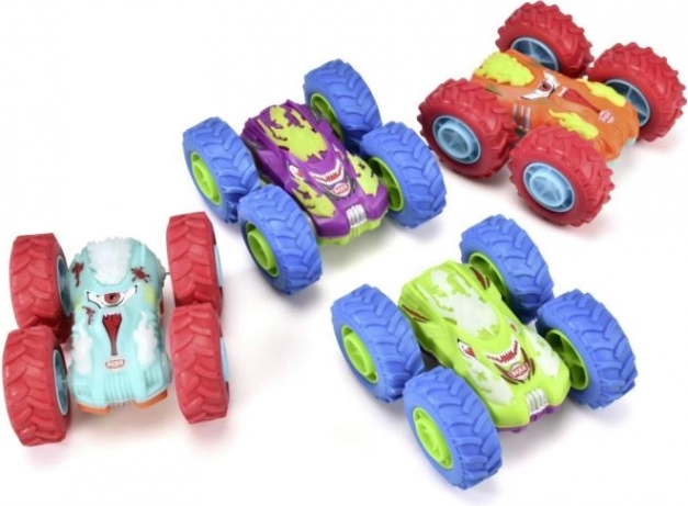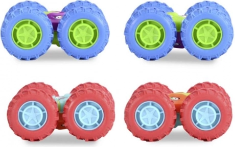Mașinuță mini distractivă cu mecanism de inerție, roți mari și funcție de răsturnare pentru cascadorii pline de adrenalină. Lungime compactă de 10 cm și alegere din 4 versiuni diferite pentru ore întregi de joacă acasă sau afară.