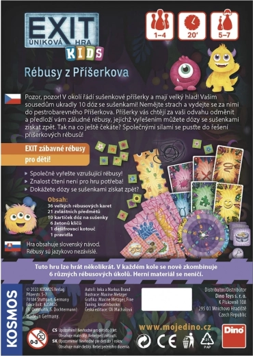 Descoperă jocul de evadare plin de joacă EXIT Kids: Rebusuri din Monstruville pentru copii de la 5 ani. Îi așteaptă povești captivante, medii frumos ilustrate și rebusuri amuzante, care dezvoltă răbdarea, munca în echipă, observarea, gândirea logică și motricitatea fină. Jocul poate fi jucat și de copiii care încă nu trebuie să știe să citească.