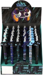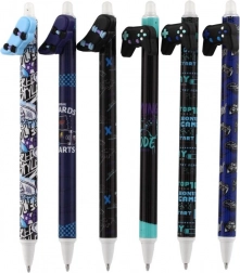 Descoperă setul de pixuri cu bilă gumabile în 6 culori, care va încânta toți fanii jocurilor video. Fiecare pix are un topper original în formă de controller, skateboard, papion sau aripi și este decorat cu imprimeuri moderne în paletă negru-albastru. Datorită cernelei gumabile corectezi ușor micile greșeli fără urme.