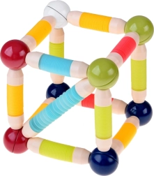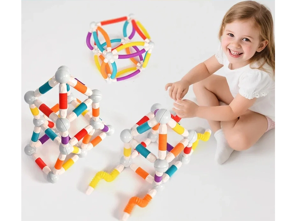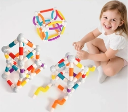 Acest set inovator de construcție magnetic, din tuburi flexibile și biluțe solide, oferă copiilor ore întregi de distracție creativă și învățare. Piesele se atrag ușor între ele datorită magneților, iar datorită flexibilității tuburilor se pot crea modele 3D stabile și dinamice – de la forme simple până la construcții ingenioase.