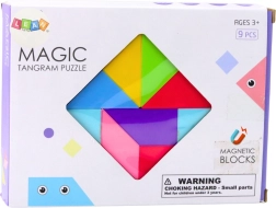 - 9 piese magnetice tangram, instrucțiuni, autocolante, ambalaj