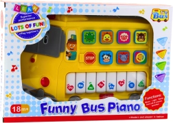 Pianul educativ galben în formă de autobuz școlar este un companion excelent pentru primele pășiri muzicale. Datorită culorilor vesele, controlului simplu și efectelor luminoase, atrage atenția și stimulează curiozitatea naturală a copiilor.
