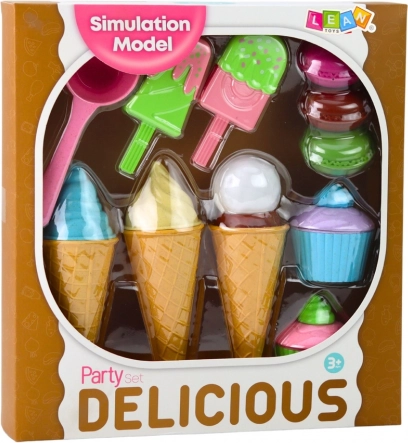 Acest set variat de înghețate și dulciuri îi poartă pe copii în lumea deserturilor delicioase și a jocului distractiv de vânzare. Detaliile realiste și culorile pastel invită la explorare, combinarea aromelor și joaca împreună. Ideal ca jucărie de sine stătătoare sau ca accesoriu pentru bucătăria ori magazinul pentru copii.