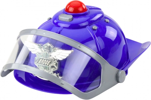 Include 9 accesorii esențiale: cască, cătușe cu chei, pistol, binoclu, stație walkie-talkie, baston, insignă și scut de protecție. Totul într-o culoare albastru închis elegantă, cu detalii argintii și negre. Setul susține creativitatea, colaborarea cu colegii de joacă și dezvoltarea abilităților de comunicare.