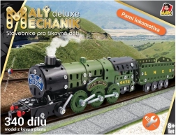 Construiește-ți propria garnitură cu abur cu tender din îndrăgita colecție Micul mecanic. Acest set conține piese metalice și accesorii din plastic, care se îmbină cu ajutorul șuruburilor și piulițelor. În pachet găsești în total 340 de piese și un manual clar, iar șurubelnița și cheia nu lipsesc. Setul dezvoltă gândirea logică, motricitatea fină, creativitatea și îndemânarea manuală. Cadoul ideal pentru micii constructori de la 8 ani.