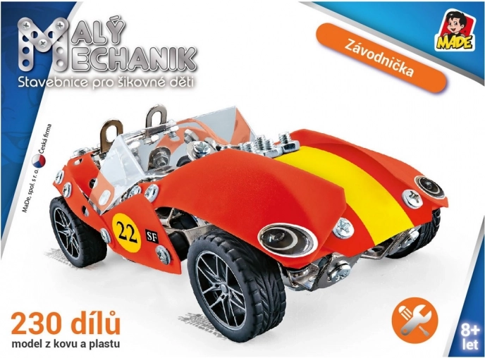 Setul de construcție Micul mecanic – mașină de curse este o alegere excelentă pentru micii tehnicieni care iubesc să creeze și să descopere principiile construcțiilor. Datorită pieselor metalice solide și accesoriilor din plastic rezistente ia naștere un model atractiv de mașină de curse, de care copiii pot fi pe bună dreptate mândri.