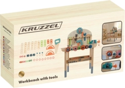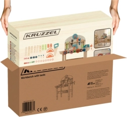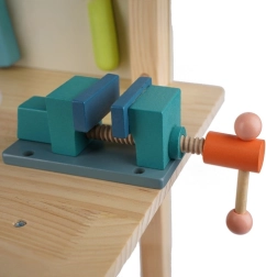 Banca de lucru din lemn pentru copii KRUZZEL oferă o stație completă de bricolaj pentru micii maeștri ai șuruburilor. Masa, cu menghină integrată, riglă și găuri pre-găurite, permite „lucru” real într-un mediu sigur. Materialele naturale, netoxice și marginile rotunjite asigură un joc în siguranță, în timp ce construcția stabilă rezistă aventurilor de zi cu zi.