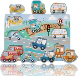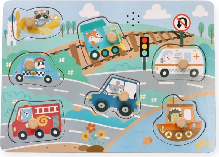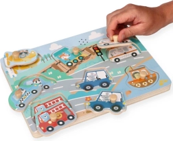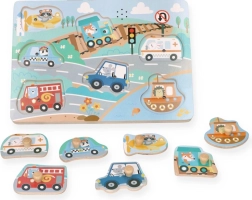 Aceste puzzle-uri interactive din lemn, cu sunete, sunt o alegere excelentă pentru primele descoperiri ale lumii transportului. Fiecare piesă reprezintă un vehicul diferit, iar după plasarea corectă se aude un sunet autentic, care îi motivează pe copii să se joace și să învețe în mod repetat.