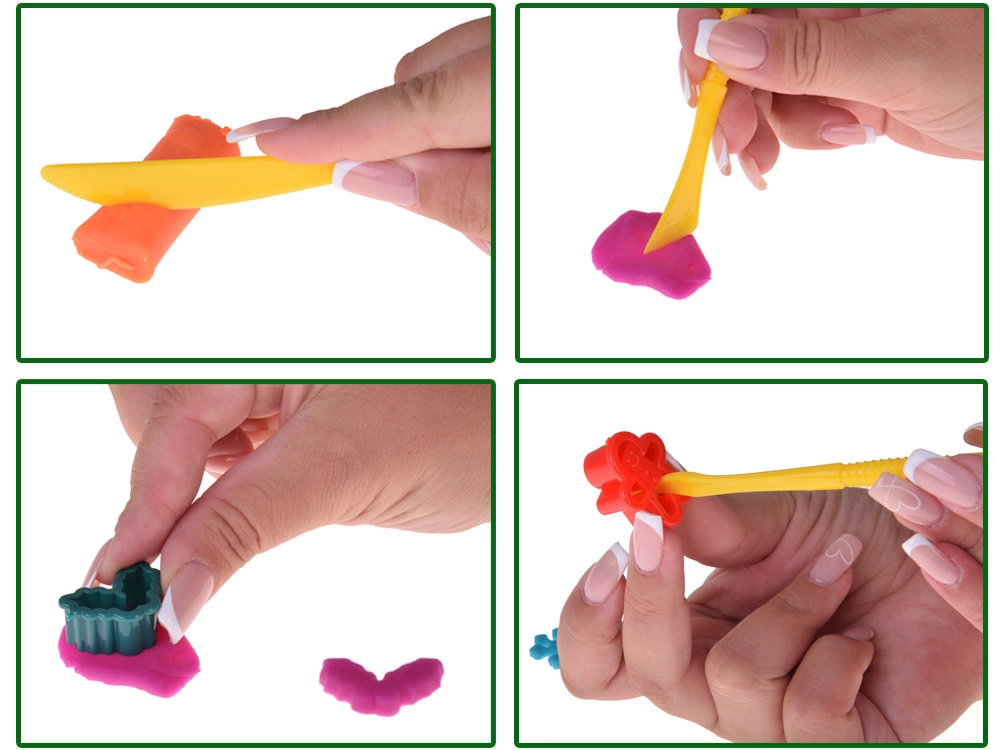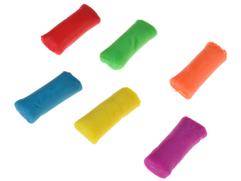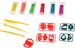 - 6 culori intense de plastilină: verde, albastru, roșu, mov, galben, portocaliu