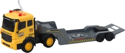 Această setare de construcții, realizată cu atenție la detalii, combină un cap tractor mare cu platformă și un excavator pe șenile realist. Datorită propulsiei Friction Power, este suficient să împingi vehiculul pentru a porni singur, în timp ce efectele luminoase și sunetele de motor, claxon sau marșarier adaugă autenticitate jocului. Rampa spate rabatabilă a platformei permite urcarea și coborârea ușoară a utilajelor.