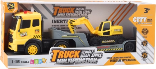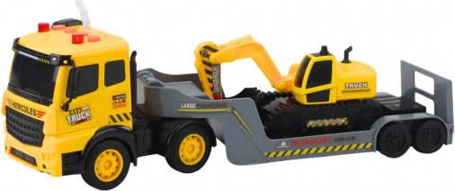 Camion cu platformă și excavator pe șenile 1:16, galben