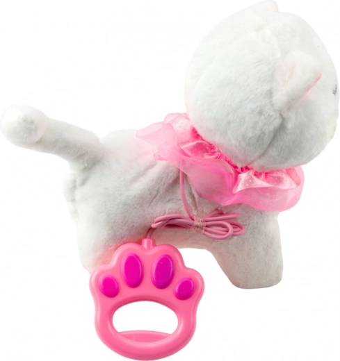 Drăgălașa pisicuță albă interactivă din pluș moale, cu volănaș roz și clopoțel la gât, va bucura orice copil. Datorită lesei cu buton, la apăsare începe să meargă și scoate sunete de mieunat. Jucăria stimulează empatia, grija și creativitatea, aducând ore întregi de distracție veselă.