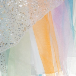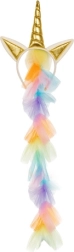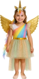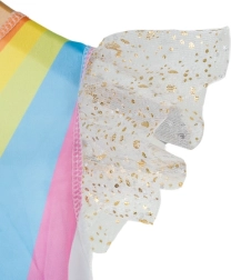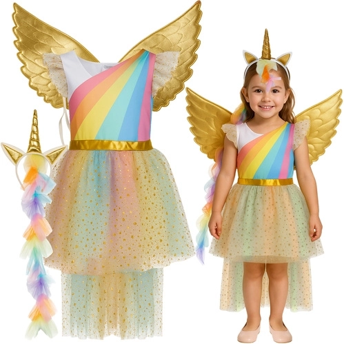 Setul magic pentru micile iubitoare de fantezie conține tot ce este necesar pentru o transformare instantanee – fustiță sclipitoare cu steluțe, aripi aurii cu elastic și bentiță cu urechi, coamă și corn. Datorită îmbrăcării simple peste cap și elementelor elastice, costumul este gata rapid de distracție fără închideri complicate.