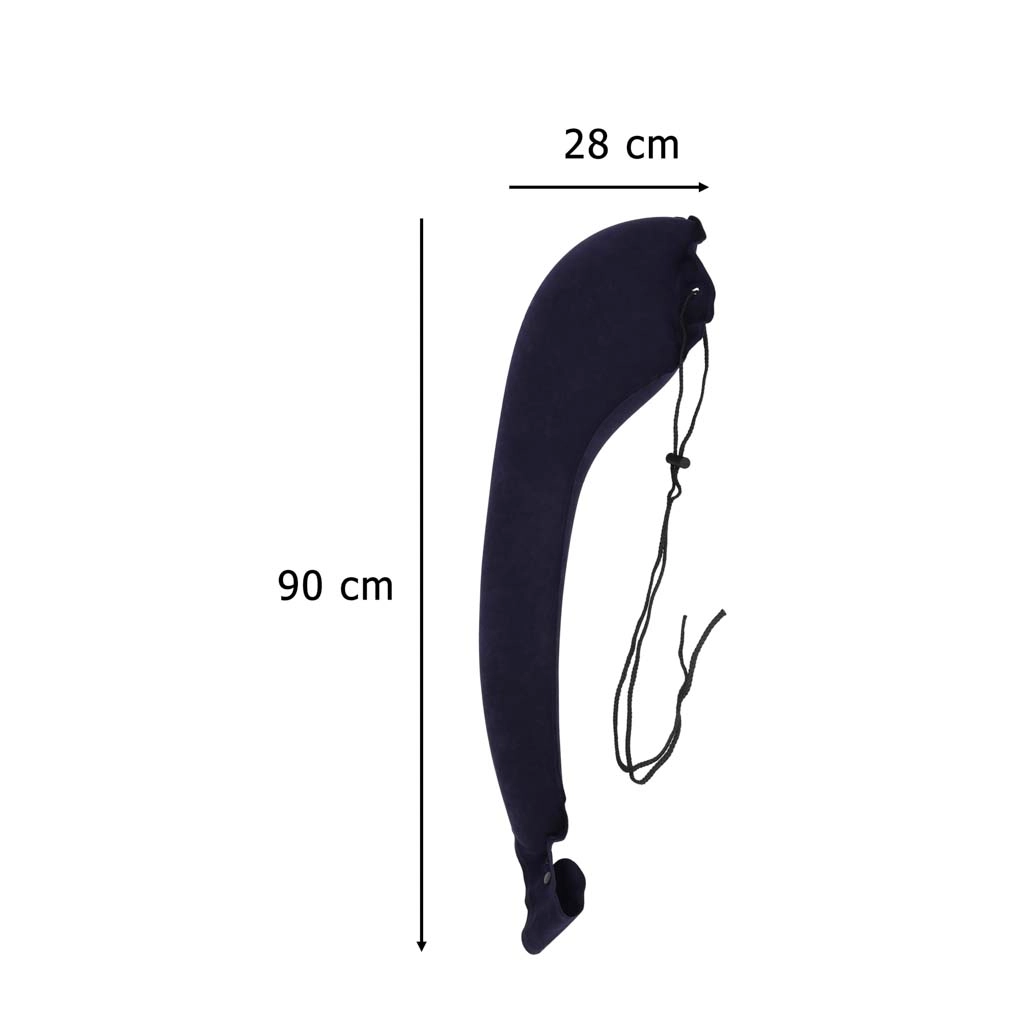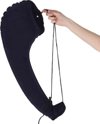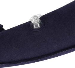 Pernă laterală gonflabilă, ideală pentru călătorii lungi cu mașina, autobuzul sau trenul. Este concepută pentru somn în poziție șezând – sprijiniți capul de partea mai lată, iar celălalt capăt se prinde de tetieră/spătar cu ajutorul clemelor de fixare. Stabilizează poziția corpului și ajută la reducerea tensiunii din zona cervicală.