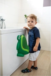 Pisoarul pentru copii FreeON Broscuță verde facilitează antrenamentul curățeniei într-un mod ludic. Fixarea cu ajutorul a două ventuze se face în câteva clipe, iar pisoarul aderă pe orice suprafață dură, netedă și verticală. Datorită opțiunii de reglare a înălțimii, se adaptează cu ușurință la înălțimea băiatului, astfel încât să poată folosi comod pisoarul în diferite etape de creștere.