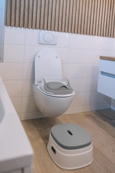 Setul de antrenament FreeON 3 în 1 este conceput pentru a însoți copilul de la primele încercări la oliță până la folosirea independentă a toaletei. Formele ergonomice, spătarul înalt și mânerele laterale susțin o poziție corectă, în timp ce elementele antiderapante asigură stabilitate și siguranță.