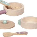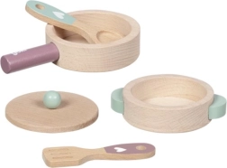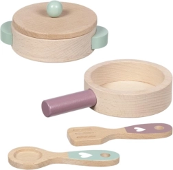 Acest set de gătit din lemn îi va încânta pe toți micii bucătari. Tigaia și oala cu capac sunt realizate din lemn de fag rezistent, care suportă chiar și „experimentele culinare” zilnice. Datorită finisajului solid și marginilor netede, jocul este sigur și plăcut la atingere.