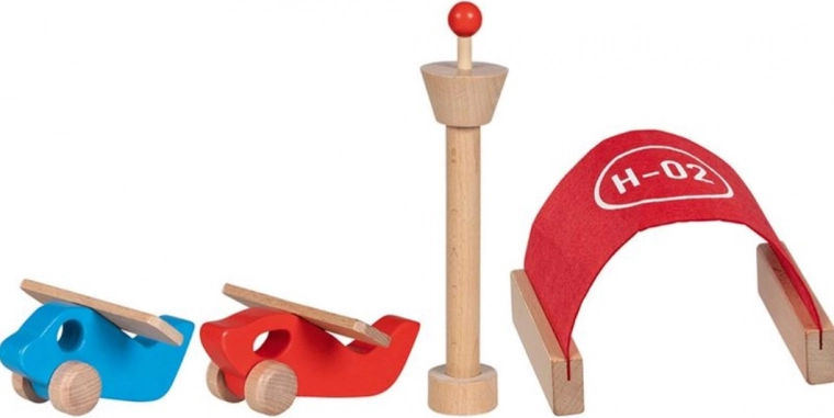 - Accesorii incluse: 2 avioane din lemn, turn de control și hangar