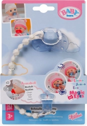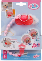 Oferă păpușii tale o îngrijire realistă cu suzeta cu clips, care se prinde ușor de hăinuțe și, datorită clipsului, nu se pierde. Este pe deplin compatibilă cu păpușile BABY born și Baby Annabell de 43 cm și valorifică funcțiile lor inteligente – la supt, păpușile emit sunete caracteristice, iar după o rotire delicată a suzetei își pot închide ochii și „adormi”.