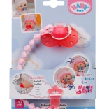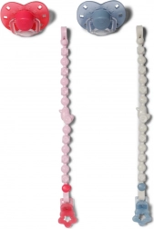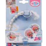 Suzeta este prinsă de un clips/lanț care se atașează ușor de hăinuțele păpușii. Astfel este mereu la îndemână și nu se pierde în timpul jocului.