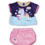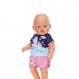 Această pijama confortabilă, cu un tricou lejer și pantaloni scurți roz, este concepută pentru păpușile BABY born de 43 cm. Datorită taliei elastice și croielii ingenioase Easy Fit, copiii o pot îmbrăca singuri cu ușurință, bucurându‑se de mai multă joacă independentă și scenarii de role‑play înainte de culcare.