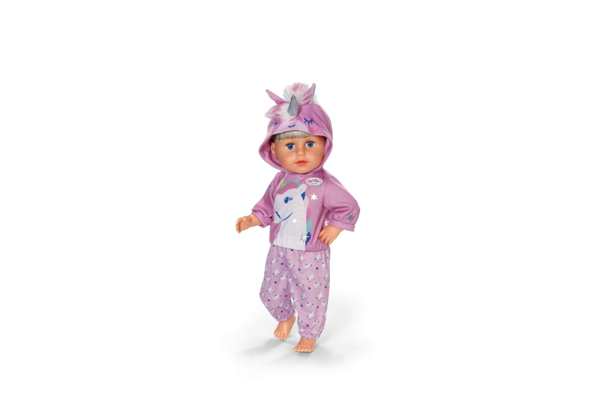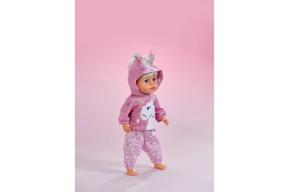 Copiii vor aprecia îmbrăcarea ușoară easy fit, materialele plăcute și detaliile ingenioase precum broderiile și „coama” moale. Ținuta se potrivește perfect păpușilor BABY born 43 cm și este potrivită pentru joaca de zi cu zi acasă sau în călătorii.
