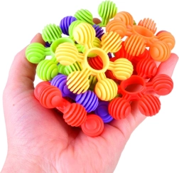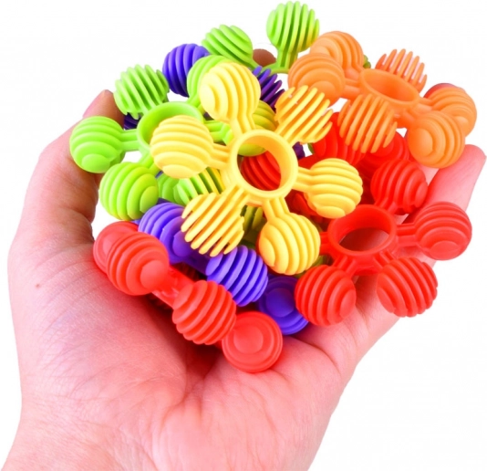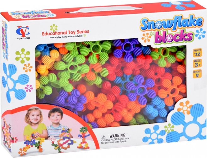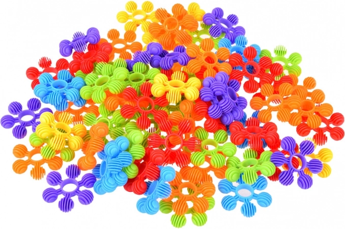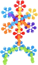 Acest set creativ de construcție în formă de steluțe/fulgi de zăpadă este o alegere excelentă pentru copiii de vârstă preșcolară. Datorită culorilor vii și formei originale a pieselor, stimulează văzul și simțul tactil, dezvoltă imaginația și ajută la învățarea formelor și culorilor. Piesele se conectează ușor, astfel încât copiii pot construi nenumărate creații frumoase.