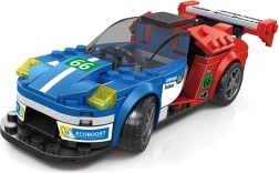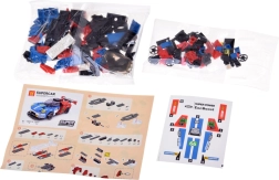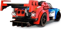 Acest set tehnic îi introduce pe micii pasionați în lumea mașinilor rapide și a mecanicii. Din piesele incluse, asamblați ușor un model de curse elegant, în combinația cromatică atractivă albastru‑roșu. Construcția stabilă și autocolantele decorative le permit copiilor să personalizeze mașina după propria imaginație.