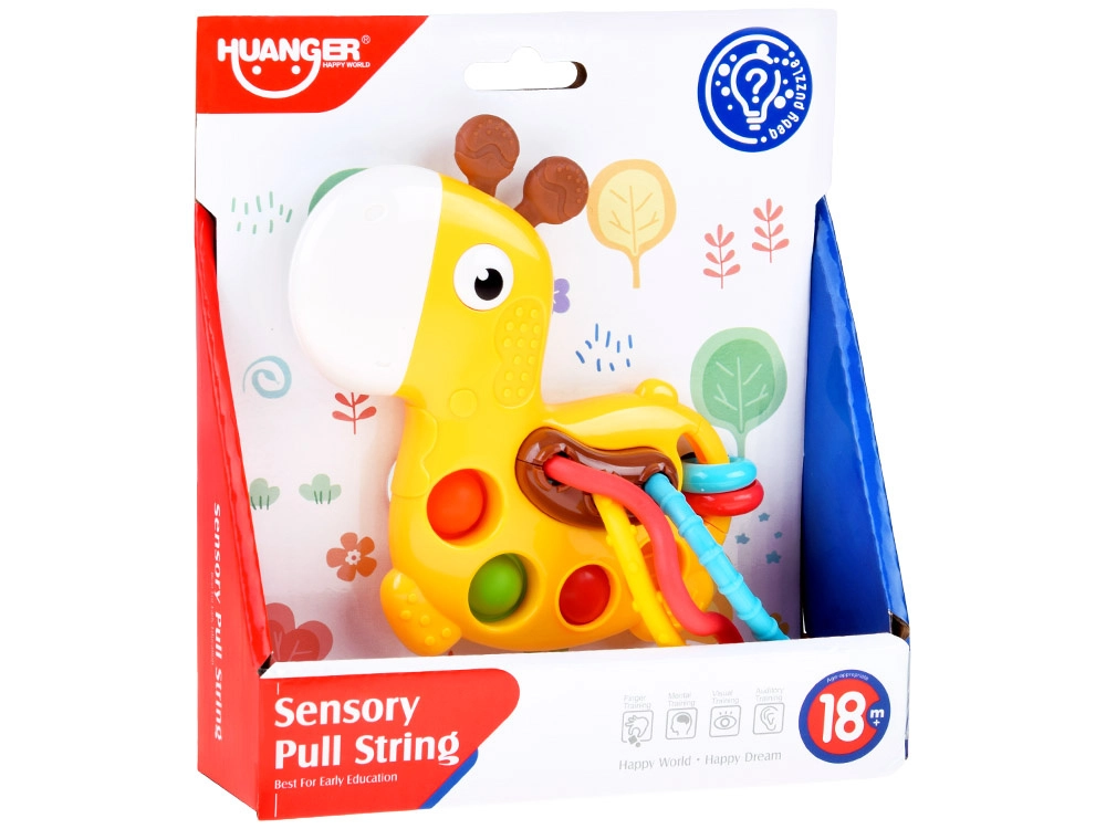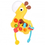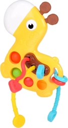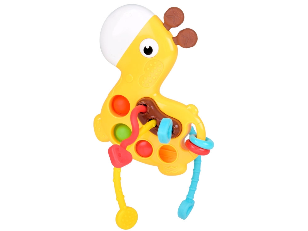 Adorabila mini girafă este o jucărie senzorială și mușcărici într-una, concepută pentru cei mai mici. Combină texturi variate, bule pop it și elemente mobile pentru dezvoltarea motricității fine, a coordonării mână‑ochi și oferă alinare în timpul erupției dentare.