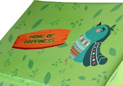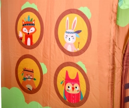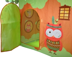Căsuța-cort Prieteni din Pădure îi va cuceri pe copii cu grafica veselă cu bufniță și păsărele și va crea un locușor primitor pentru joacă, citit și relaxare. Datorită greutății reduse și montajului rapid, este potrivită atât pentru camera copilului, cât și pentru grădină. Deschiderea de intrare și ferestrele asigură acces facil și o bună circulație a aerului.