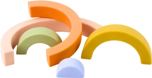 Acest set curcubeu pastel din cauciuc de calitate va încânta atât copiii, cât și părinții. Arcurile individuale, în dimensiuni diferite, pot fi așezate, suprapuse și conectate în forme ingenioase. Materialul moale este plăcut la atingere și blând cu mânuțele mici, fiind ideal pentru primele construcții.