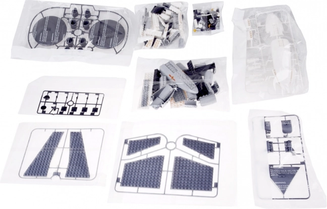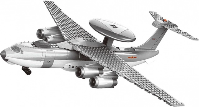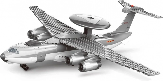 Set de construcție tehnică AWACS E‑3 Sentry 1:100 din 217 piese. Antenă radar realistă, design alb‑gri, dezvoltă motricitatea și creativitatea copiilor de la 6 ani.