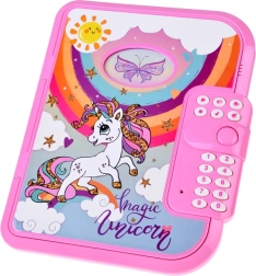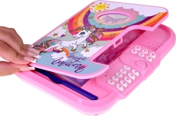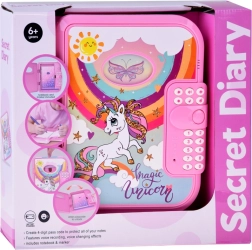 Jurnalul interactiv cu motiv de unicorn este locul de vis pentru toate gândurile, desenele și secretele copiilor. După introducerea codului corect, jurnalul se deschide și dezvăluie un caiet roz, un marker pentru scris și o cutiuță secretă pentru mici comori. Rama frontală poate fi personalizată cu o imagine interschimbabilă.