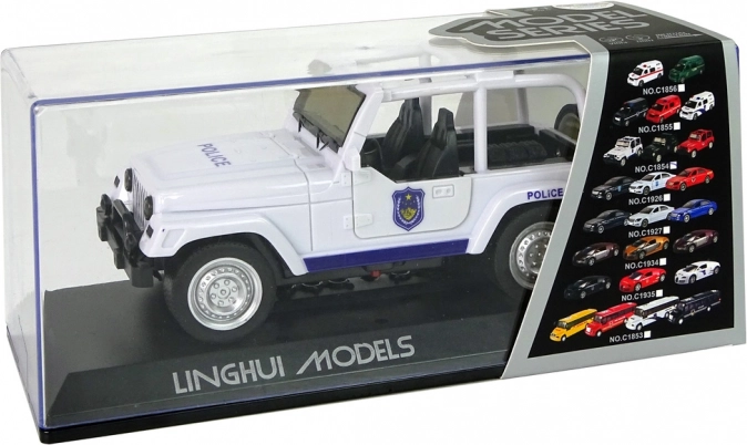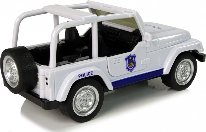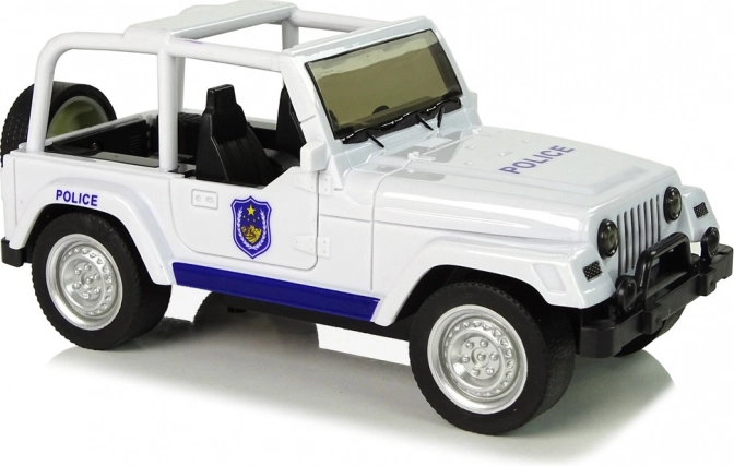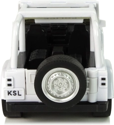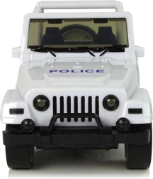 Devino apărător al legii și pornește în acțiune! Mașina de poliție off-road albă este alegerea perfectă pentru copiii care iubesc acțiunea și aventura. Dimensiunile compacte se potrivesc în mâna copilului, în timp ce anvelopele din cauciuc și mecanismul pull-back asigură o cursă distractivă pe distanțe scurte. Mașina are uși față deschizibile, interior detaliat și elemente albastre de poliție cu inscripția POLICE.