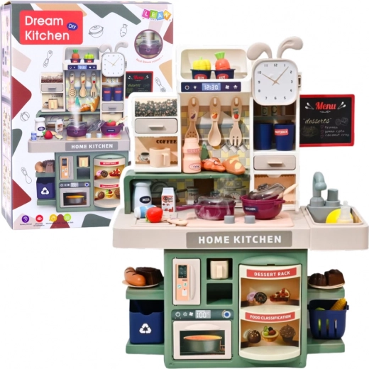 Bucătăria pentru copii aduce o experiență realistă de gătit datorită efectelor de lumină, sunet și abur. Copiii pot „găti”, „coace” și „prăji”, pot curăța chiuveta și organiza accesoriile pe rafturi. Construcția de calitate și sigură asigură durabilitate și utilizare confortabilă.